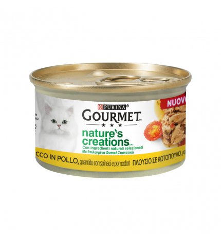 PURINA GOURMET NATURE’S CREATIONS GATTO POLLO CON POMODORI E SPINACI DA 85 GR IN LATTINA
