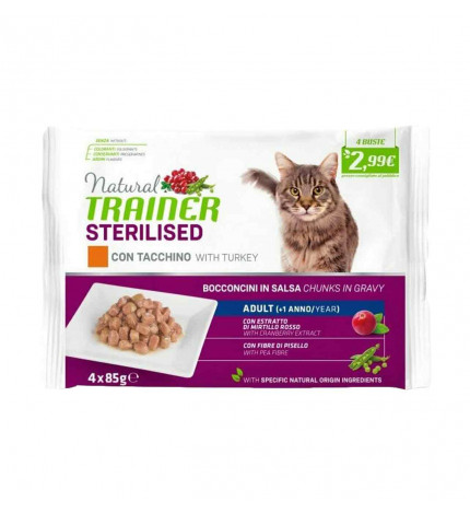 Natural Trainer Natural Adult Sterilized Turkey Multipack 4x85gr, полноценный и сбалансированный корм для стерилизованных кошек.