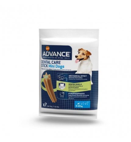 AFFINITY ADVANCE STICK FOR DOGS MINI DENTAL CARE 90ГР Отложения зубного камня, гингивит и неприятный запах изо рта могут привести к потере зубов: Dental Care Stick прерывает образование зубного камня в три ключевых момента. Перекус иногда сочетается с полноценным рационом. Эта мини-версия подходит для собак весом от 3 до 10 кг. Преимущества: МЕХАНИЧЕСКОЕ ДЕЙСТВИЕ: Помогает удалять остатки пищи благодаря своей особой форме, которая оказывает большее механическое воздействие на зубы и увеличивает время жевания на 40%. DENTALSHIELD: Помогает уменьшить образование налета. зубного налета благодаря специальному бактериостатическому активному ингредиенту.С ПИРОФОСФАТАМИ: Помогает уменьшить образование зубного камня за счет пирофосфатов, которые противодействуют его минерализации.Состав: Зерновые, субпродукты растительного происхождения, мясо и субпродукты животного происхождения, минеральные вещества (из которых 1% тетранатрийфосфат) масла и жиры.Аналитические компоненты: Белки 8%, Содержание жиров 3%, Сырая клетчатка 1,5%, Неорганические вещества 3%, Влажность 25%, Натриевая и кальциевая соли аскорбинового монофосфата 1200 мг.