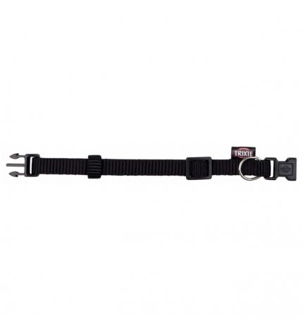 TRIXIE COLLAR PREMIUM МОДЕЛЬ Детали: Изготовлен из высококачественного нейлона Полностью регулируется Очень прочный благодаря специальной системе застежки, снижающей напряжение Черный цветРазмер: 30-45 см/15 мм