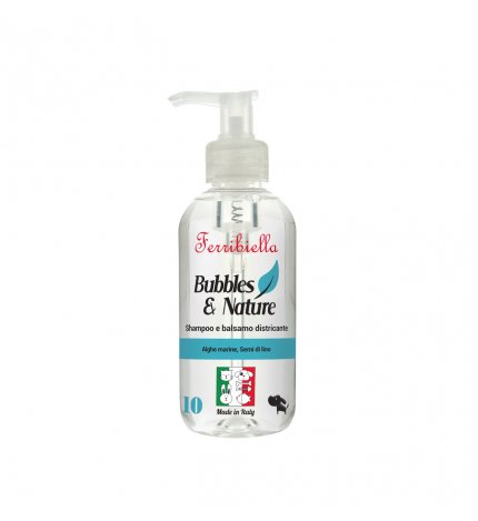 FERRIBIELLA Шампунь и кондиционер для собак, 250 млОписание:Ferribiella Шампунь и кондиционер для распутывания волос, 250 мл.Подробнее:Шампунь и кондиционер для собак Ferribiella, объединенные в один продукт, позволяют укрепить шерсть вашей собаки, распутать узлы и сделать ее мягкой и блестящей. Нежный, гипоаллергенный, с добавлением морских водорослей и семян льна, этот продукт учитывает физиологический pH кожи вашей собаки, очищая и питая шерсть. Способ применения: Распределите достаточную дозу шампуня, разбавленного водой в соотношении 1/10, на предварительно влажную шерсть собаки и помассируйте несколько минут, затем смойте. Состав: Морские водоросли, льняное семя Формат: 250 мл.