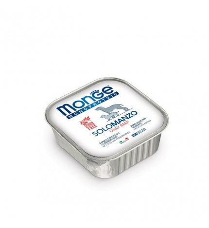 MONGE CANE MONOPROTEICO ONLY BEEF 150 ГР В ФОРМАТЕ Описание:Monge Cane Monoprotein только говядина 150 г в лоткеДетали:Лотки для собак Monge Monoprotein only beef содержат вкусный паштет на основе единственного и высококачественного источника белка, равный 100% используемого мяса. Этот монопротеиновый корм Monge, состоящий из отборной и высококачественной говядины, не содержит злаков и глютена: рис заменен тапиокой, более усвояемой и более нежной для кишечника, подходящей для всех Fidos с аллергией или пищевой непереносимостью. Состав: Говядина (в пересчете на 100% используемого мяса), минеральные соли, витамины.Аналитические компоненты: Влага 80%, Сырые белки 11,5%, Сырые масла и жиры 2%, Сырая зола 1,7%, Сырая клетчатка 0,5%. Пищевые добавки: витамин А 2500 ед/кг, витамин D3 300 ед/кг, витамин Е (альфа-токоферол 91%) 7 мг/кг. Технологические добавки: Загустители и гелеобразователи. Не содержит красителей и консервантов. Не содержит глютена.Формат: 150 гр.