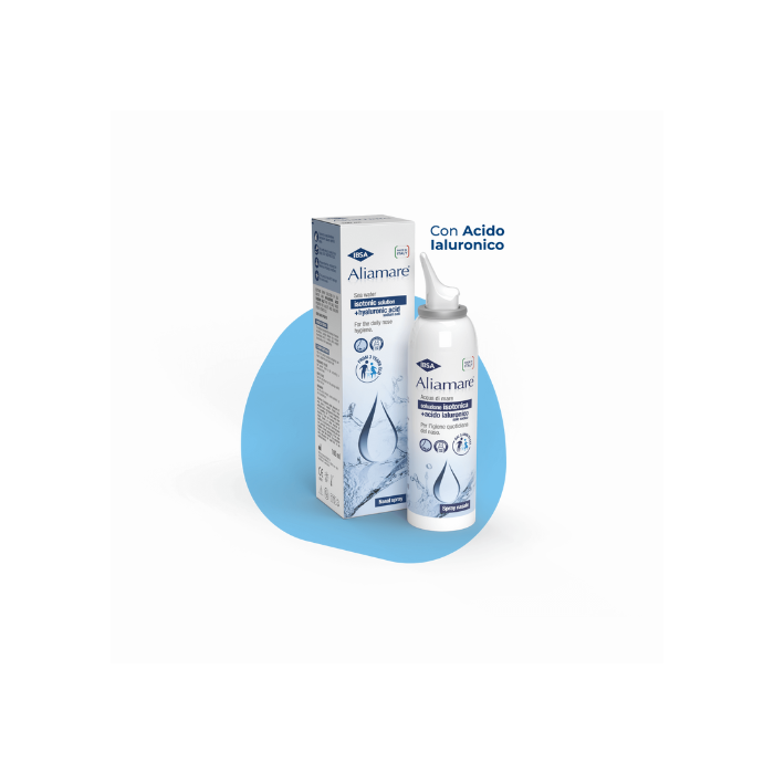 Назальный спрей с морской водой и иалуроновой кислотой для ежедневной гигиены, увлажнения и расщепления слизистой оболочки. Адатто всей семьей. Dispositivo medico CE.