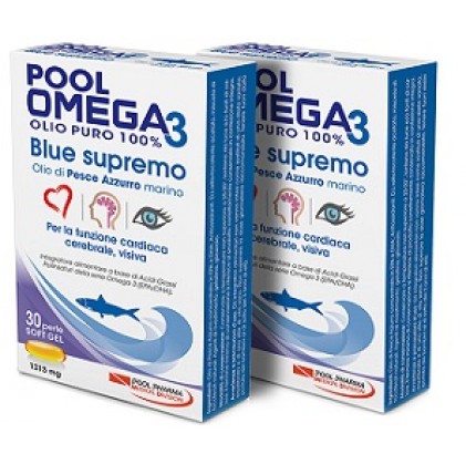 POOL OMEGA3 BLUE SUPREME Пищевая добавка — это основа, содержащая 100% чистое масло, основанное на Алисах, Сардинах и Тихом океане и Атлантическом океане, а также алкогольные напитки с большим содержанием EPA DHA. Содержит 630 мг Омега-3 на каждую жемчужину, содержит витамин E, защищающую EPA и DHA, препятствующие поступленикиникиники. Принимаемые в адекватных дозах, EPA и DHA способствуют нормальной функции сердца (250 мг / день EPA и DHA *), мозга и зрения (250 мг / день DHA *), поддержанию нормального уровня триглицеридов в крови (2 г / день EPA и DHA *). * Европейские правила n. 432/2012 от 16 мая 2012 г. Состав Blue Fish Oil концентрат в EPA и DHA.